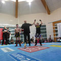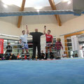 Sechs von unseren Kämpfern bestritten sogenannte Demo-Fights, wo darauf geachtet wurde, das noch nicht so hart gekämpft wird, bzw der Ringrichter den Kampf nach Treffern schneller unterbrochen